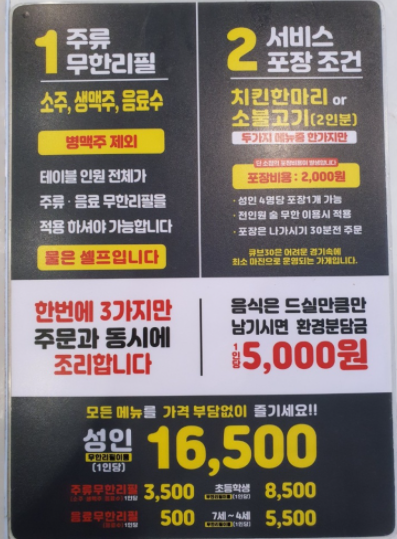 1인 16,500원 소불고기, 삼겹살, 찜닭, 막창, 치킨, 닭모래집 등 24가지 즉석요리 무제한